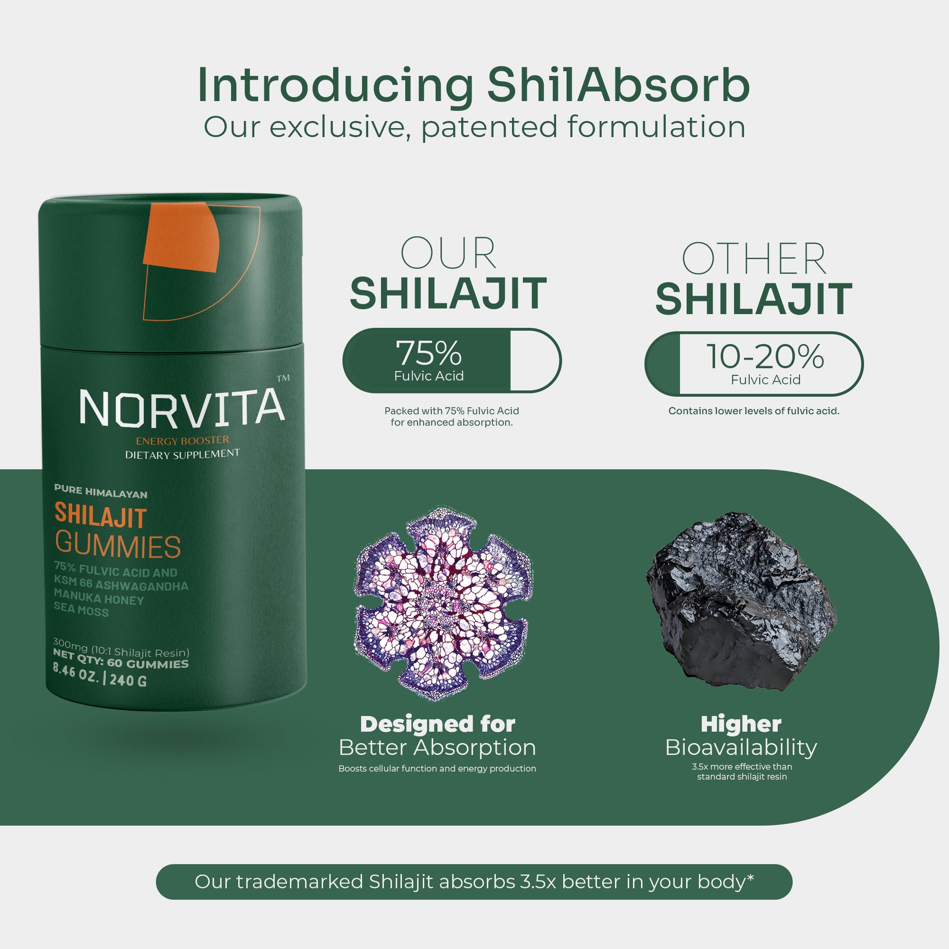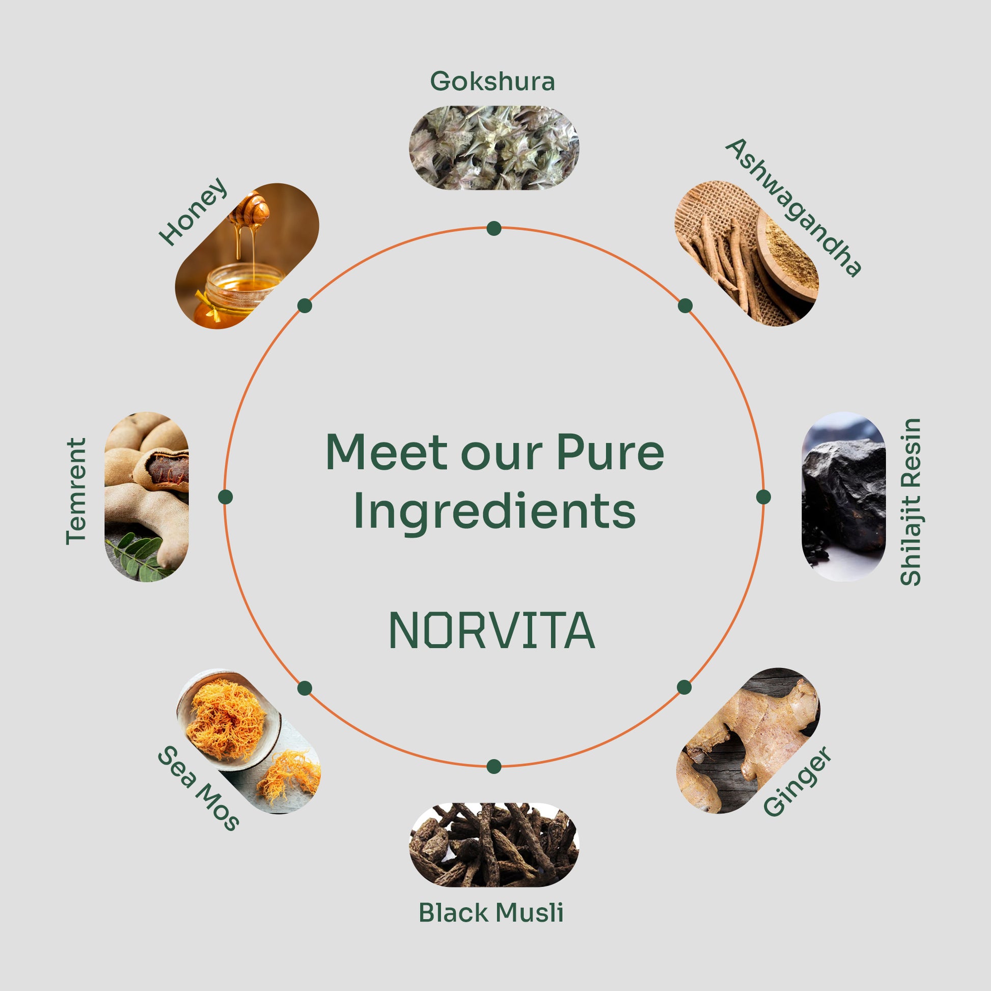 Norvita Pure Himalayan Shilajit Gummies Men & Women With Ashwagandha| Manuka Honey| Sea Moss| Black Seed Oil| Fulvic Acid & 85+ Trace Minerals Prenatal Vitamins